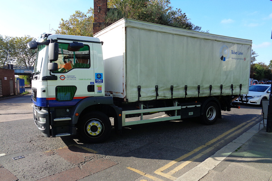Details: Two new MAN demountable lorries were delivered in November 2017. WU67AJY was seen turning in to Acton Works on 25th October 2018, fitted with a curtain-sided box body still carrying Tube Lines lettering. This body is almost certainly DB15, new in 1993 and normally to be found standing on its own legs in the lorry yard at Acton. In fact the only report I have of it being used was from 2014. |