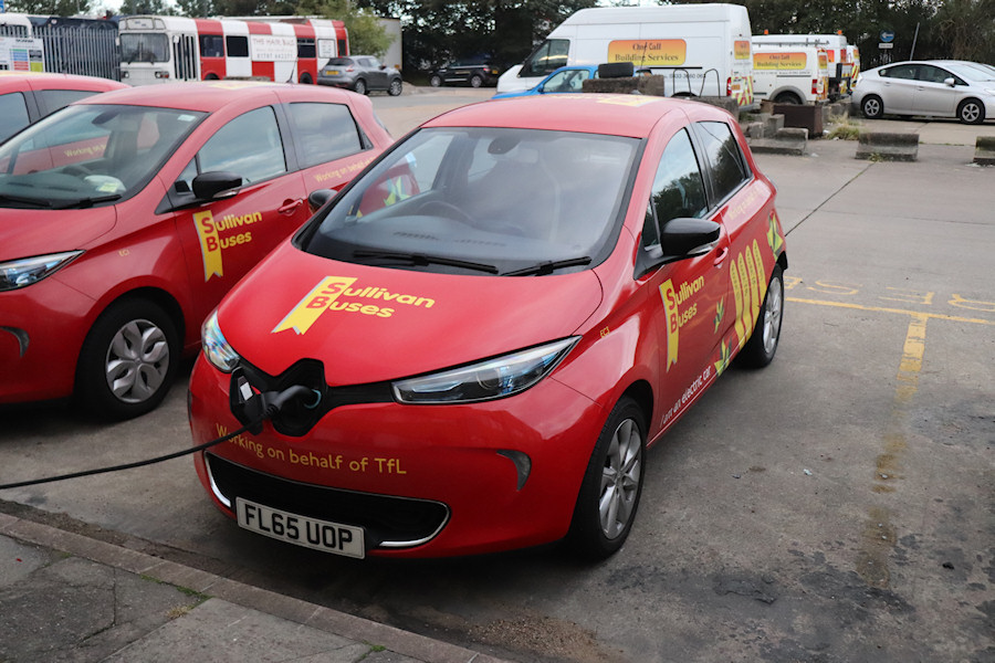 Details: The Renault Zoe electric cars used by Sullivan Buses have featured on LTSV before, but only from behind! The same applies to LUL's sole example but I digress. So, for everyone who asked to see Zoe's face, here it is! Yup, you plug-in in her nose! Fleetnumber EC3 is carried by car FL65UOP which was, unsurprisingly, the third Electric Car acquired to support the companies growing TfL bus operation. However, one of the first pair had an accident and was replaced by a fourth, although the damaged car was later repaired and returned to service. All four cars were in fact present at South Mimms Garage on this occasion (9th September 2018), although what became EC4 is out of shot on the left and was still in unmarked white at the time. Also visible is the world-famous Hair Bus. |