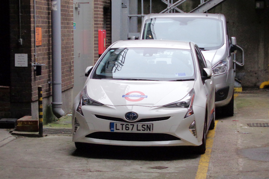 Details: I just mentioned the enclosed yard at Euston Cobourg Street. On Ray's visit on 28th December 2018 a passing member of staff opened the pedestrian doorway to allow him to take this photograph. Inside was Toyota Prius car 8564T, which appears to have been based here since new in September 2017. Also present was an unmarked silver Ford Transit Custom minibus, believed to be KF15OED. The latter has appeared on official fleetlists and we even have a 'paper' allocation for it (Highgate). I usually add unmarked vehicles other than cars, so I don't know why I haven't done this one! |