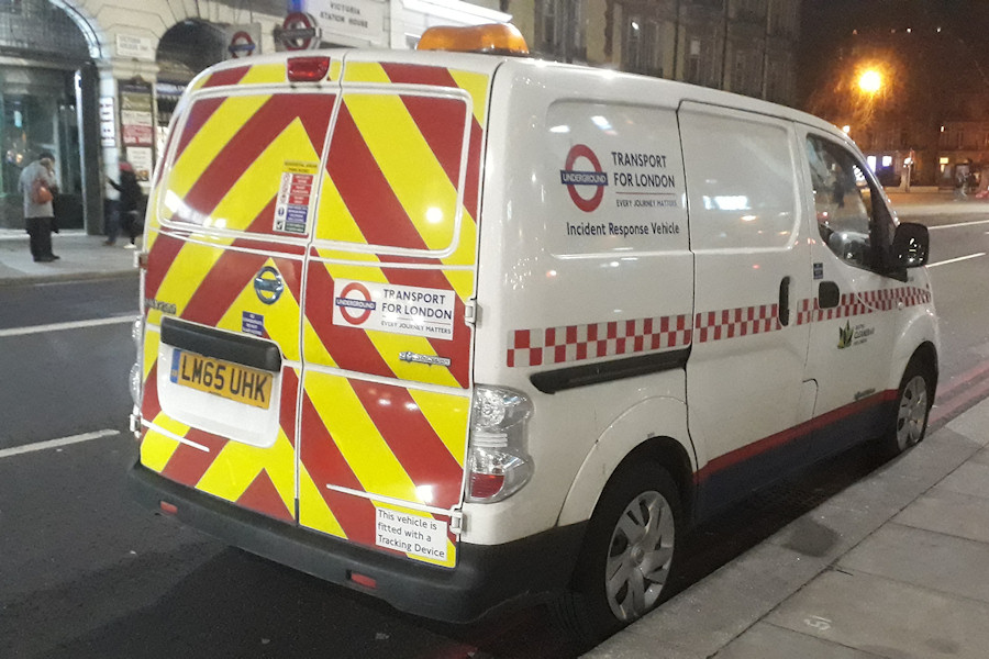 Details: Having just shown a vehicle at Edgware Road Station which perhaps is not based there, here is a photo of one which is based there and indeed is rarely seen elsewhere. 8158N is a unique Nissan e-NV200 electric van which carries LUL Incident Response Vehicle livery. On the night of 3rd March 2019 it was found parked opposite Victoria LUL station. |