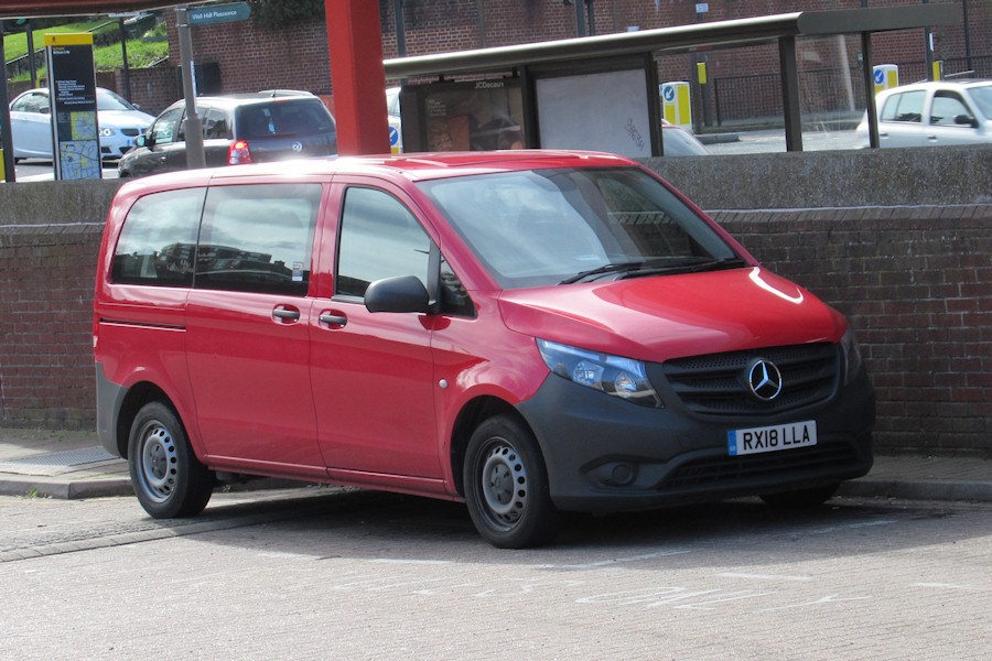 Details: Mercedes-Benz Vito minibus RX18LLA was one of several new to Go-Ahead London in spring 2018 and used initially from River Road garage in east London. On 5th March 2019 it was photographed at Eltham Bus Station, suggesting it had recently transferred to Orpington Garage. Though still unmarked, many similar transfers in the past have seen anonymous red vehicles gaining lettering for the first time. |