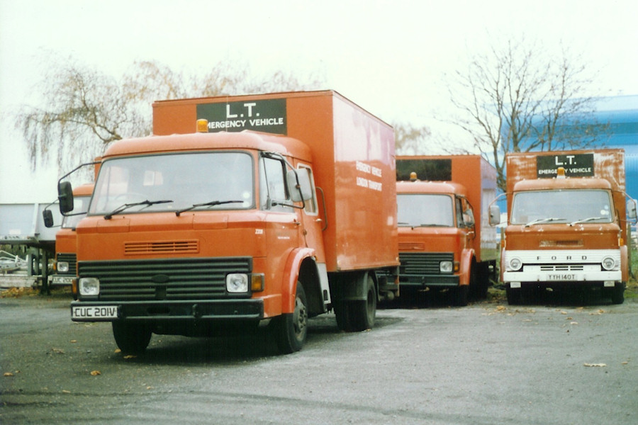 Details: I was very saddened to hear that Colin Lloyd, who was diagnosed with cancer a couple of years ago, died earlier this week. Without Colin there would be no LTSV, for it was his regular updates on the service vehicle fleet in the LOTS newsletter that fostered my interest in the subject. Colin was the vehicle news editor for LOTS for almost 30 years, mainly covering the buses but thankfully not neglecting our 'niche' interest. When I created the first version of this website, Colin started sending in regular batches of photos taken all over London, as well as giving me access to his huge collection of photos from the 1980s and 1990s. And he introduced me to his friends Ivor, Keith, Malcolm, Phillip, Richard and Scott, several of whom have continued to provide pictures ever since. Colin also gave me reams of documents, including fleetlists which were instrumental in populating the LTSV database. Lastly, he supported the production of the SUP15B book, which then led to the re-introduction of a monthly SV column to the LOTS magazine. There are still quite a few of Colin's photos that have not yet appeared on LTSV, but there will be additions from time to time, when I feel a dip into the archives would be of interest. Here then is a view of the lorry yard at Acton Works taken on 30th November 1990. Present were at least four of the Railway Emergency Ford D box trucks which had just recently been replaced by new Mercedes-Benz demountables. 2140F on the right has the original D-series grille, with round headlamps, while the other three have the modernised design that the type featured for its final few years. 2200F, peeping in on the left, was apparently sold in October 1990. Perhaps it had just not yet been collected. The truck behind 2201F is almost certainly 2199F, as the only red D-series vans with the later grille were 2199F to 2201F and 2217F, and 2217F was sold in 1985. |