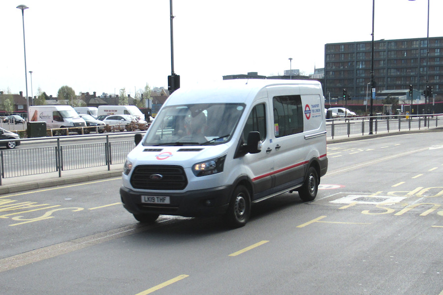 Details: A slightly rushed but pretty decent shot ensued when this van caught Ray by surprise at Canning Town Bus Station on 28th March 2019. A mid/mid (medium wheelbase, mid-height) Ford Transit Mk.8 crew van in LUL livery, it had a surprisingly high fleetnumber of 8831F. There must be a lot of vehicles on order to fill all the gaps. |