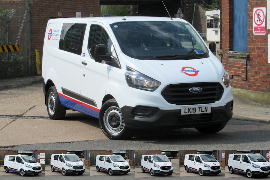 Details: At least 50 new vehicles were delivered in March and April 2019, the most numerous of which were Ford Transit Custom crew vans for LUL. Most of these are destined for the Lifts and Escalators section to replace similar 7911F to 7927F. The L&E section is based at Frank Pick House in Acton and regular readers will recall that there is now a road connection between this location and the lorry yard of Acton Works. This connection is however treated as a one-way road. Vehicles arriving at Frank Pick House use the existing entrance off Bollo Lane (near Bollo House), while departing vehicles use the lorry yard and the ramp down to the main works exit. On 12th April 2019 a batch of seven vans was ferried from the works (where they had been prepared and liveried) to Frank Pick House, and fortunately Ray was on hand to photograph each of them over a half hour period. Rather than show several, I have composited them all together. The main image is of 8757F while along the bottom (left to right) are 8739F, 8740F, 8744F, 8746F, 8747F and 8753F. Ray did well to catch all of these from across the road without traffic getting in the way, although the last was very slightly obscured by a passing lorry. Note that the livery application now includes a sliver of white between the skirt/stripe and the black 'rubbing strip'. It should be mentioned that, although these vans were taken to Frank Pick House, they will most likely be kept elsewhere once in service. |