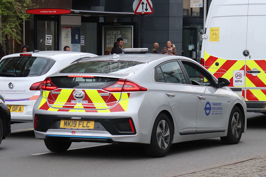 Details: This car passed me at speed a couple of weeks ago so I was pleased to receive a photo of it from Derek. It is a Hyundai Ioniq hybrid in silver with TfL lettering on the doors and a small London Buses logo on the back. It also has a light-bar, and was seen passing Lewisham Town Hall (in Catford) on 7th May 2019. Despite appearances, I don't think this is a 'central fleet' vehicle, and it does not feature in the latest fleetlist received from Acton Works. I suspect it is more like the Peugeot Partner van photographed recently at Morden Station and actually operated by a London Highways Alliance contractor. The question of whether or not to include these vehicles on LTSV is open to debate. For now, reports of any similarly-marked vehicles would be appreciated. |