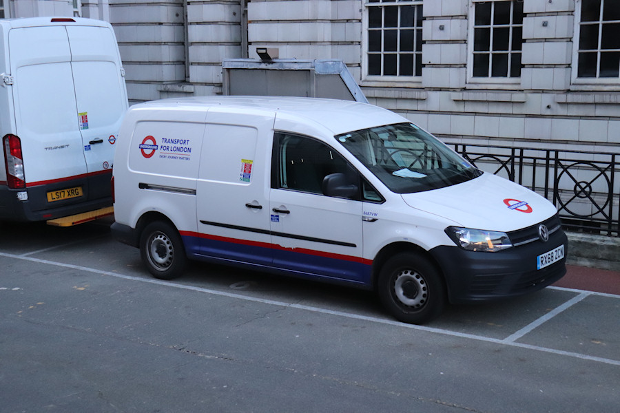 Details: Almost 150 Volkswagen Caddy Maxi vans have been added to the leased fleet since 2010 and observations of the dealership in Bedfont suggest that quite a few more are on the way. The majority have been crew vans (with additional side windows), just a few plain vans being used by LBSL and LUL. Several of LUL's appear to be used as mail vans and are commonly seen at Baker Street (Allsop Place). Present on 5th March 2019 was 8687VW, new the previous September. It was parked near to resident Ford Transit van 8405F. |