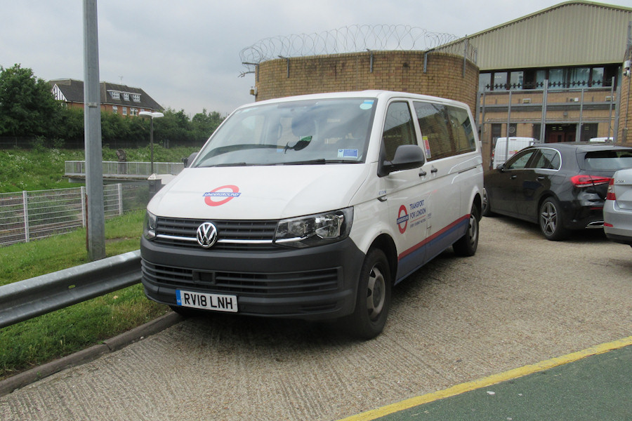 Details: This minibus gained 'fame' for having sat at the dealership for over 6 months before delivery, during which its registration number was changed from RE67WOH (voided) to RV18LNH. It eventually made it to Acton Works in summer 2018 and was soon allocated to the nearby Museum Way. Normally it hides in the back yard there, but on 11th June 2019 it was parked at the front. |