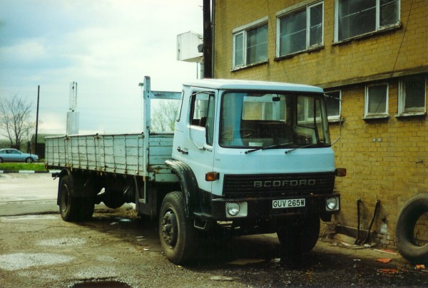 Details: 2265B (GUV265W) was one of the first Bedford TL lorries bought by London Transport, arriving in August 1980. Larger than most of its brothers, it had a TL1630 chassis and a 16-ton capacity, plain dropside body, mounted rather high. The lack of tail-lift must have made loading and unloading quite difficult. It was photographed at Purfleet in March 1990, two years after it had left the fleet. As with many former service vehicles, the London Transport lettering has been obliterated but not the fleet number. Note that the cab is partially tilted! |