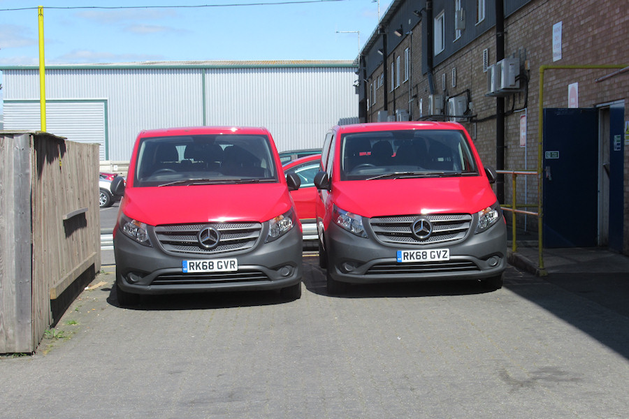 Details: Go-Ahead London has added at least twenty Mercedes-Benz Vito minibuses in the past year, all in unmarked red and mainly to replace similar older vehicles. Eight were new in autumn 2018 with RK68GVx registrations, some of which have only recently been reported. Six of this batch are based at the former Metrobus garage in Croydon (Beddington Lane), where Ray found RK68GVR and RK68GVZ on 1st July 2019. |