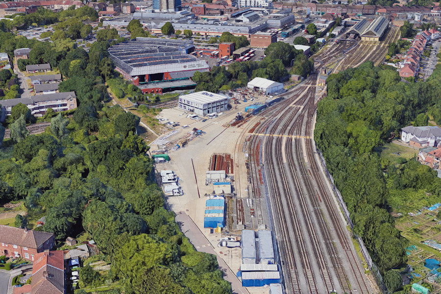 Details: This is a view of Edgware Track Depot, looking north west towards the bus garage and station. Opened in about 2010 on the site of former engineers sidings, the location is home to at least 17 service vehicles. There is some ghosting and glitching in this image (caused by vehicles moving between passes) but I reckon that 20 SVs are actually present. A (2D) May 2018 image on Google Earth shows about 32 SVs present. The location is accessed by a long private road (coming in from the bottom centre of this image) which eventually comes out on Deans Lane. The only public view into the depot is a glimpse from Northern Line trains as they pass behind the portacabins in the centre and before the overbridge just to the left. The depot has three sidings, to the right of which are four train stabling sidings, plus a headshunt for the original depot (visible beside the station in the top right). The bridge over the Northern line used to carry the GNR/LNER railway between their Edgware station and Mill Hill East (and thence to Highgate and Finsbury Park). This was transferred to London Transport control in 1939 and, although there were plans to electrify it, only the section from Finchley Central to Mill Hill East was done, this remaining as a curiously short branch of the Northern Line. The remainder of the route lost its passenger service, retaining freight services until final closure in 1964. The access road to Edgware Track Depot was built on the former trackbed, while the stabling sidings appear to have been a chord between the two lines. Beyond the overbridge, the old railway curved northwards to a terminus on Station Road. Interestingly the bus garage, built in 1984 - 20 years after the closure of the line - has a curved rear, seemingly to follow the trackbed. |