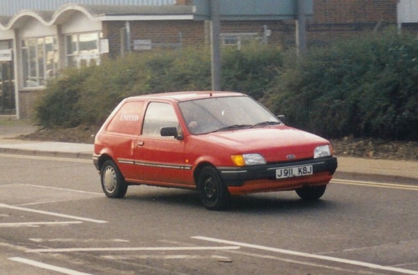 Details: To ferry crews between the garage at Hounslow Heath and route termini, London United (and originally Westlink) use a fleet of second-hand Ford Fiesta vans. J911KBJ was photographed leaving Hatton Cross station on 15th December 2001. |