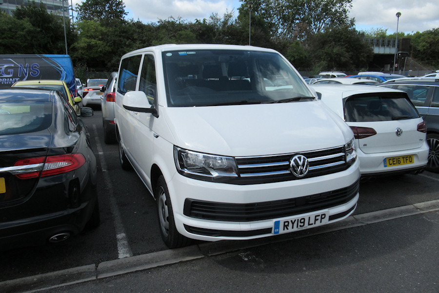 Details: As has been seen before, most new vehicles are delivered in unmarked white/blue to Acton Works, where the livery and lettering is applied by a contractor (one of their vans can be seen on the left in this photo). However, I suspect they will not have dealt with this vehicle, photographed in the front car park on 15th August 2019. RY19LFP is a short-wheelbase Volkswagen Transporter minibus to the higher 'SE' specification. Compared to the basic 'S' model this has air-conditioning, body-coloured bumpers and mirrors and extra chrome strips across the front grille. Earlier 'SE' minibuses were given TfL PCO livery but these were long-wheelbase versions. A fleetlist received a few weeks later showed that RY19LFP had been assigned fleetnumber 8932VW, along with similar RY19LFR becoming 8933VW. This is interesting as the numbers adjoin those allocated to a pair of VW Caddy Maxi crew vans that were delivered in plain white and appear to have entered service still in that state (8930VW and 8931VW). Reports of these minibuses in service would be welcomed, bearing in mind that if they are anonymous they will be easy to miss. I suspect that all four vehicles are operated from Stratford Market Depot, although why they would need a few 'secret' vehicles is not clear. |