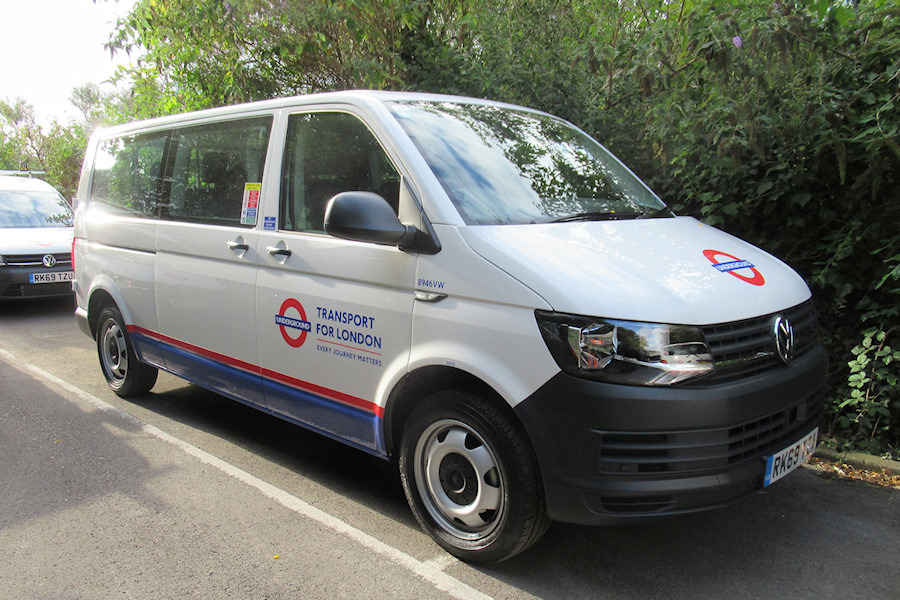 Details: The latest batch of Volkswagen Transporter minibuses totals four and they were delivered to Acton Works on the 4th or 5th of September 2019. A couple of days later (7th) they had been marked up in LUL livery with fleetnumbers 8945-8948VW, almost but not quite in registration number order. 8946VW was seen on the stub road at Acton, parked with several equally new Caddy Maxi crew vans. |
