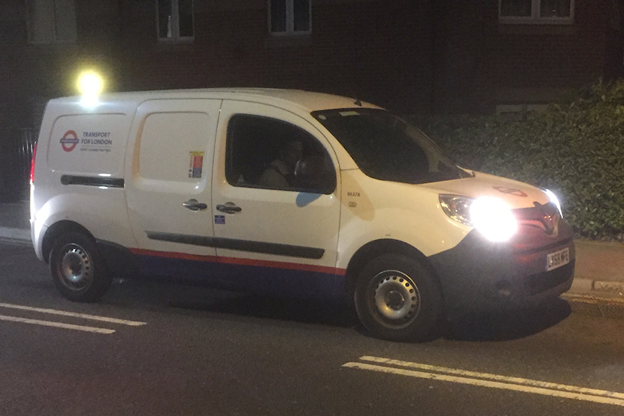 Details: The Renault Kangoo is the most numerous type in the central fleet, accounting for almost exactly a fifth of the current leased fleet. 8657R is a very standard-looking LUL van but has been quite elusive since delivery in September 2018. It was caught by Paul in Stanford-le-Hope just after midnight on 19th September 2019. The numbering suggests that this van was a one-off, rather than part of a batch. 8656F is a Ford Transit in Elizabeth Line livery, while 8658R to 8663R are similar Kangoo Maxis but in Trams livery. |