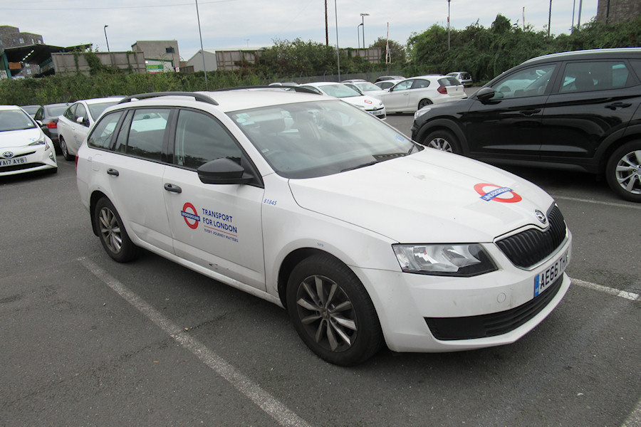 Details: I think I may have slipped up with this vehicle. Two Skoda Octavia estates were delivered in October 2016 and were noted in the Acton Works car park with LUL roundels on their bonnets. They were later transferred to Westdown Road (Leyton), where they were eventually photographed. Co-incidentally, the sides of the cars were not visible at either location, and I seem to have made the assumption that they carried normal white/blue/red livery. However, Ray found 8184S in the car park of Acton Works on 5th October 2019 and it was clearly in plain white. Looking back at the Leyton photo, it is notable that the two Skodas lack the blue/red striping on the rear, as carried by the two VW Golf estates also allocated here. It seems likely that the other Skoda (8218S) was/is also plain white.