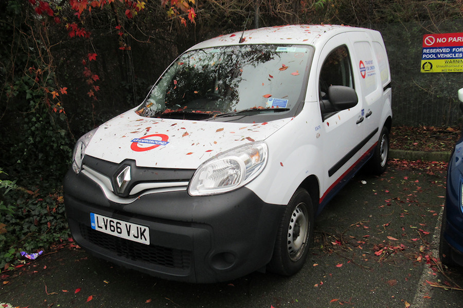 Details: Cowering in the far corner of the Acton Works car park on 5th November 2019, this never-before-seen Renault Kangoo van had tried to hide itself under some leaves. Very little is known about the allocation, habits and mating rituals of this 3-year old van. |