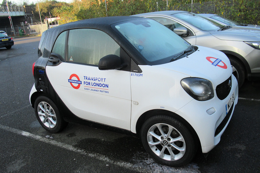 Details: Ray has had some interesting finds on his recent visits to Acton Works, perhaps none more so than this photo taken on 30th November 2019. The subject is a Smart Fortwo car registered WU17JSV. This was noted at Acton (albeit not clearly) when new in 2017 and it was the 17th (and now sole) Smart car in the numbered fleet. But the number is a problem. Official lists show the car as being numbered 8349SM, which fits in with its age. However, as this photo shows, it actually carries number 8176SM. Things are actually even muddier than that, as we have attributed the number 8176 to Mercedes Sprinter van WX65VRV. Although the van does carry this number (8176M), it appears on official lists as being a second to be allocated the number 8140M, which means that the number 8176 was 'officially' available. And there's more! Van WX65VRV was originally allocated number 8147M, which did remain unused once the new number (or one of them at least) was assigned. So, um... Another confusion with this car is the livery. The black parts are panels rather than painted, so the livery has been listed as white. The rear tailgate and bumper are mainly white. Earlier Smarts had a combination of silver and black panels around the rear corners, as seen on 7625SM. The final mystery is where this car is allocated, though I suspect it may be based out at Rickmansworth, a small car being visible there in Google aerial photos. |
