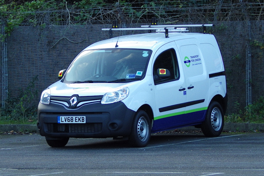 Details: Renault Kangoo van 8727R was seen in the car park at Acton Works on 8th December 2018 when just a couple of days old. The Tramlink operation received nine new service vehicles in autumn 2018, and it appears that their fleet must have grown as fewer vehicles than that appeared to have been replaced. 8727R spent a couple of weeks here before being delivered, but it was back at the works barely a year later, being parked in the lorry yard with accident damage in November 2019. |