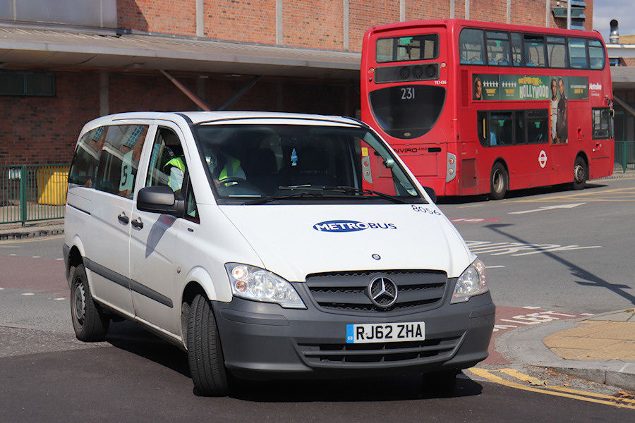 Details: Despite the addition of numerous new Mercedes-Benz Vito minibuses to the Go-Ahead London fleet over the past couple of years, some of the older examples have remained in use. RJ62ZHA was part of a batch of 15 Vitos acquired in early 2013 for use by Metrobus, with whom it was fleetnumber 8056. Reshuffling of the combined Go-Ahead fleet saw it moved first to Silvertown (in 2016) and then to Northumberland Park (in 2019), despite which it retained the Metrobus logo and fleetnumber on its white livery. Northumberland Park crew ferries run to various locations, the most frequent being Tottenham Hale Station. Turnpike Lane was added in 2019, following the winning of bus route 232 from Metroline. RJ62ZHA was seen turning around at the south end of the bus station on 20th August 2019, showing a local duty number 5 in the side windows. |