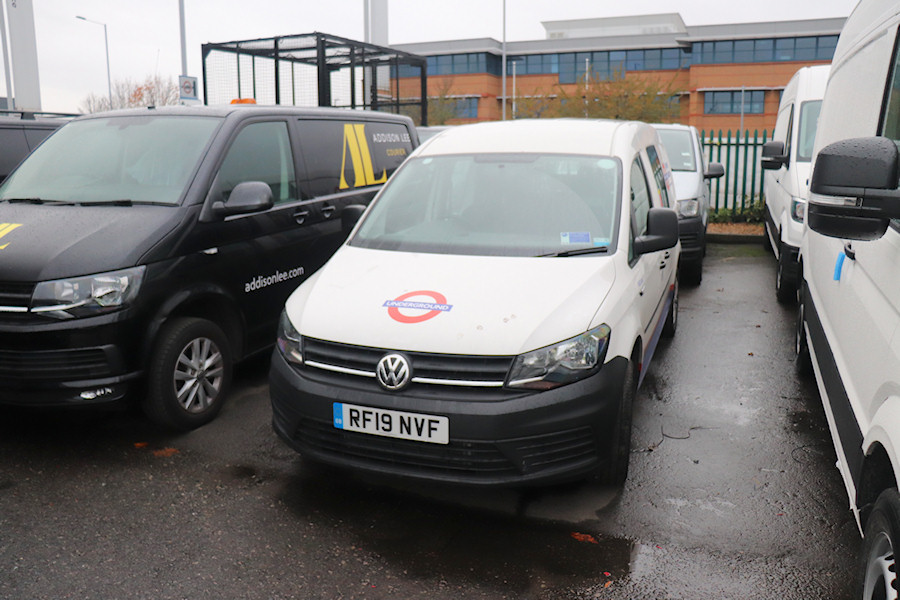 Details: Another VW Caddy making a return visit to the Cordwallis dealership in Bedfont was 8883VW on 12th November 2019, and I think I know the reason. This Caddy Maxi crew van was licensed as RA19NVF but it was clearly carrying an incorrect numberplate on the front at least. RF19NVF is not in fact a normal issue, registrations where both blocks of letters end in the same letter being held back as 'select' marks. The reason behind this is so that people can pay a bit extra to get marks that match their initials. For example, Mr John Albert Smith might want JS67JAS. The van was parked amongst other new vehicles awaiting delivery, including some Transporters for Addison Lee, and more of the white Crafter vans which may yet turn out to be for LBSL. |