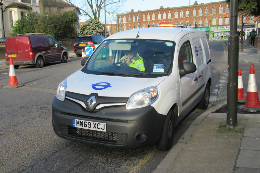 Details: The five Renault Kangoo vans new to TfL in January 2020 have been allocated to the Streets operation at Chancel Street in Southwark, apparently as belated replacements for the Ford Fiesta vans withdrawn in August 2019. Diesel Kangoo 9116R was seen at Southend Crescent in Eltham on 4th February 2020. There is a bus stand at this location and work was underway to install a new toilet for drivers. |