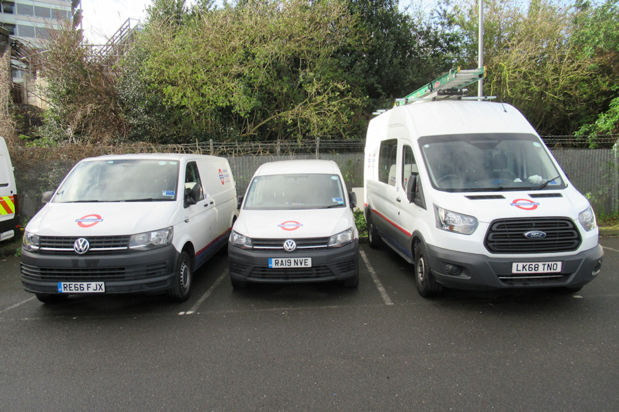 Details: It is somewhat unusual to find anything larger than cars and small vans in the car park at Acton Works, so this view taken on 14th March 2020 is notable. As well as one of the new LBSL IRUs just visible on the left, present were Volkswagen Transporter van 8220VW, Volkswagen Caddy Maxi crew van 8902VW and Ford Transit crew van 8673F, all of which are based here. Perhaps parking spaces in the main works were in short supply. |