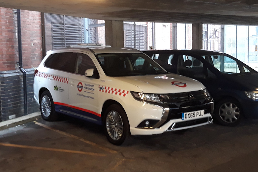 Details: The number of vehicles with 3-letter fleetnumber suffixes was tripled in early 2020, with the arrival of two more Mitsubishi Outlander electric cars to join 8830MIT. First up was 9054MIT, delivered to Acton at the end of February (though first licensed in early January) and dispatched to Harrow-on-the-Hill Station in early March as a replacement for Honda 8005H. Its livery is the emergency variant of LUL, very similar to that on 8830MIT except that the lettering on the new car is the more normal 'Incident Response Vehicle'. Another difference is that the Harrow car has a light-bar. On 7th March 2020 it was found lurking in the car park next to the south entrance to Harrow-on-the-Hill Station. |