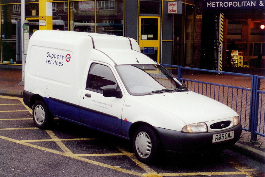 Details: Many vehicle manufacturers produced van versions of their car models, often simply by omitting the passenger doors and windows. The Ford Escort, Ford Fiesta and Vauxhall Astra all saw use as service vehicles in both car and commercial configuration. A drawback of this approach was that the load space was restricted by the dimensions of the car bodywork and in the late-1980s/early-1990s several 'hybrid' models were introduced. These retained the chassis and front end of the car designs but married it to larger bodywork to the rear. To keep the windscreens and doors standardised, this often resulted in a 'stepped' appearance, as seen on the Vauxhall Astramax (1986-1993) and later Combo B (1993-2001), and the 2nd generation Volkswagen Caddy (1995-2004, based on the Polo car). The final design of Escort van also featured a slightly enlarged cargo space but in 1991 Ford added the Courier model, based on the Fiesta car platform. 21 examples of this type were added to the leased fleet between 1995 and 2001, with a total of 8 being in stock at April 2000. 4809F, photographed at Uxbridge Bus Station on 24th October 2000, is an example of the 1995 design, which was based on the Fiesta Mk4. The oval grille replaced the earlier plain design, and was further revised in 1999. The allocation of this van is not known though, being lettered for Distribution Services, it was probably Acton Works. Note the mismatched wheeltrims. Production of the Courier ended in 2002, both it and the Escort van being replaced by the new Transit Connect model. However, the Courier name returned in 2014 as the smallest model in a newly expanded Ford Transit range. |