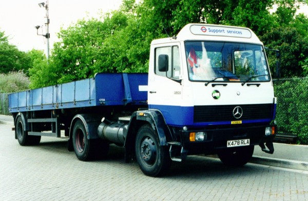 Details: Another Mercedes-Benz 1520 articulated unit is 2528M (K478RLA) seen here coupled to drop-sided trailer CT33. These trailers were originally used with smaller Ford Cargo tractor units, hence the apparent height difference when used with Mercedes-Benz 1520 and Actros tractors. |