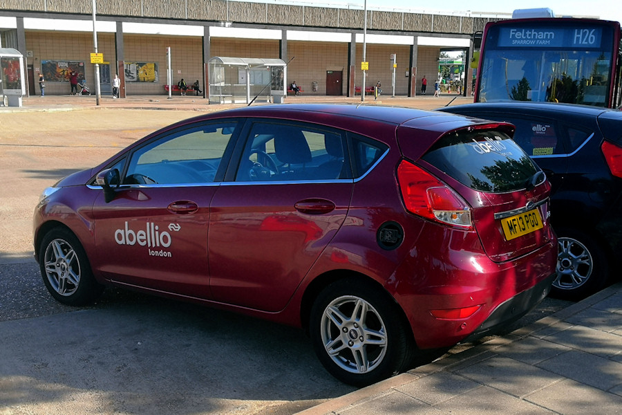 Details: Hatton Cross bus station at tea-time on 28th May 2020 was a bit quieter than usual, but not nearly as deserted as some locations have been during the COVID-19 pandemic. A closer look at this photo will also show that a handful of the people in the background are wearing face-masks, something which you would not have seen in London a couple of months ago. Abellio is evidently still using cars as crew ferry vehicles, presumably on the basis that they only have one occupant at a time. Ford Fiesta hatchback MF13PGO is one of many similar cars bought second-hand a few years ago, and it was assigned fleetnumber 6804. The fleetnumbers are sometimes carried on the fuel filler cap, but the cap is missing in this view. This car was noted once at Twickenham (Fulwell) garage but has otherwise been based at Hayes. The car alongside has a 'Tracker' warning label in the nearside window and is probably ML13FNK, as seen in the next photo. |