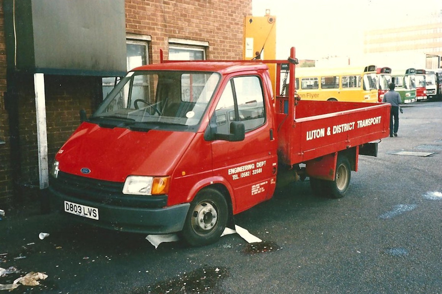 Details: The next eleven photos are the tail-end of a feature looking at the service vehicle fleets as they were twenty years ago in 2000, this part looking at the bus company fleets. Having said that, I now realise that a couple of the vehicles may not have actually been in use in 2000. Take this Ford Transit dropside truck of Luton and District seen at Luton Garage. It had been first licensed in August 1986, and although the date of the photograph is unknown, various clues make me think it was probably taken in about 1988. But, with no sightings recorded, and not much in the way of official fleet information, the date it was disposed of is hard to pin down. It was last licensed until January 2008, but I have recorded an 'out' date of 'by2005', perhaps because I obtained a fleetlist in 2005 on which it did not appear. Even so, it could have been sold anytime between 1990 and 2005. Luton and District was formed in 1986 from part of United Counties Omnibus. It was thus outside the traditional (pre-1970) London Transport area, though it later bought one of the parts of London Country and ... let's just say things became complicated. |