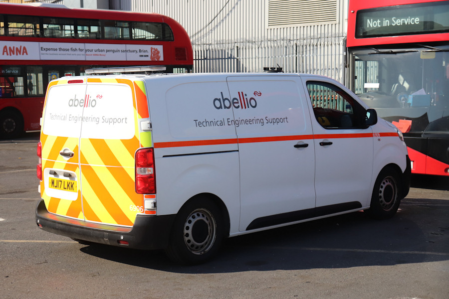 Details: Derek found this previously unreported van parked at Abellio's Battersea garage on 23rd June 2020. MJ17LKK is a Citroen Dispatch van with full lettering and fleetnumber 6906. It was presumably acquired second-hand, though it is very similar to three vans bought new in 2019 and numbered 6901 to 6903 - reports of anything carrying numbers 6904 or 6905 would be welcomed! Two differences are that the new vans had a green stripe and 'Engineering Support' lettering, while 6906 has an orange stripe and 'Technical Engineering Support' lettering. I have also just noticed that 6906 appears to be slightly longer than the other vans. |