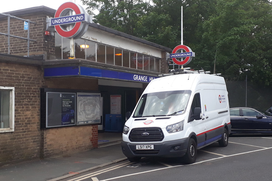 Details: 8409F was one of two Hainault-based Ford Transit vans found parked at nearby Grange Hill station on 28th June 2020. The original station here was opened by the Great Eastern Railway in 1903, but it was totally rebuilt when the line was transferred to London Transport control in 1948. |