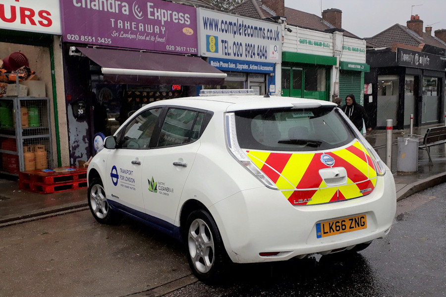 Details: Seen parked rather haphazardly at Gants Hill on a grotty 2nd October 2020, this is TfL's Nissan Leaf electric car 8210N. Two such cars were leased in October 2016 and were used by TfL Streets from their Chancel Street base in Southwark, replacing Toyota Prius hybrid cars. The second Nissan (8211N) was transferred to LUL in early 2020, seemingly to replace similar but slightly older 7711N. Rather surprisingly (given that it was already over three years old) it had its livery and lettering suitably amended. |