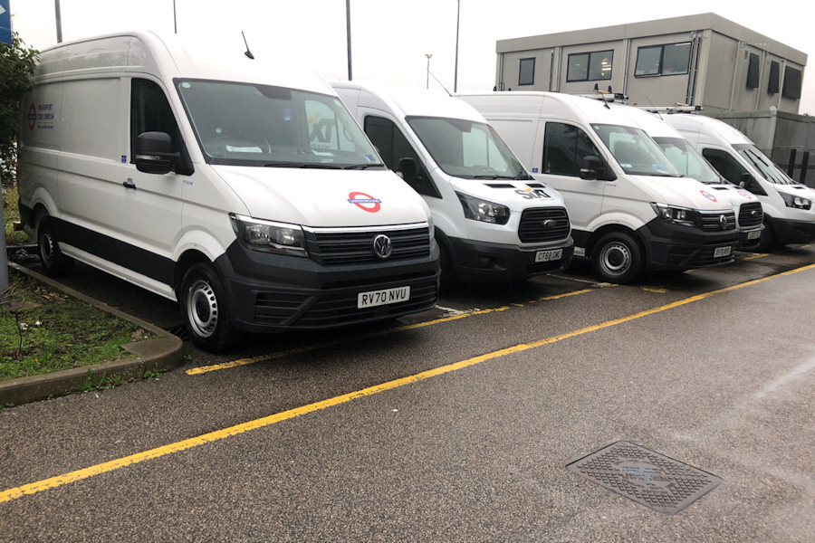 Details: Somewhat unexpected was the delivery of several Volkswagen Crafter vans to LUL's Hainault Depot in October 2020. Two were present on the 21st, with 9126VW nearest the camera and 9125VW on the other side of the Sixt hired Ford Transit. A couple of days later 9127VW was added, perhaps as a replacement for the hired Transit. Also visible in this line-up are two of the existing allocation of Ford Transits, 8406F and what is probably 8409F on the end. The new Crafter vans are similar in configuration to the recent LBSL Incident Response Units (i.e. medium wheelbase and high-roof) though they are notable for having a full set of LUL/TfL lettering but no side skirts or stripes. The reasons for this are not known, perhaps being because the large black plastic rubbing strip takes up so much space. |