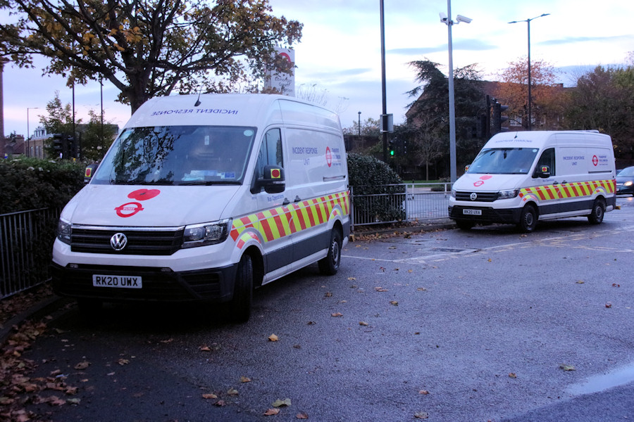 Details: More IRUs with poppies, this time at Edmonton Green Bus Station on 28th October 2020. The vans are 9091VW (left) and 9097VW (right), both believed to be from the Turnpike Lane allocation. Edmonton Green has (as far as I know) never had an allocation of service vehicles, meaning that we have not given it a location code. However, I may do so in future, simply so that photos (and sightings) can be appropriately tagged. Turnpike Lane has an allocation of about 8 IRU vans to cover a large area of north London. Over half of the allocation can usually be seen 'at home', though some recent visitors have found the bus station containing only LBSL cars, with the vans all out at other locations such as Walthamstow, Chingford and Edmonton. |