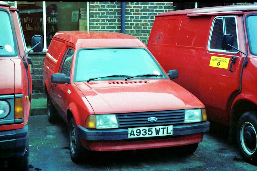 Details: Ford Escort van 3256F was one of several used by LT's Advertising and Publicity section, though they were usually outnumbered by Bedford CF vans like the ones seen on either side here. New in June 1984 as a replacement for similarly-sized Bedford HA 2331B, 3256F was officially allocated to Walthamstow, initially at the bus garage then moving to the new premises in the industrial estate at Blackhorse Road. It was photographed however at the southern base for publicity vehicles, Stockwell Garage, in February 1988. Withdrawal came five months after this. |