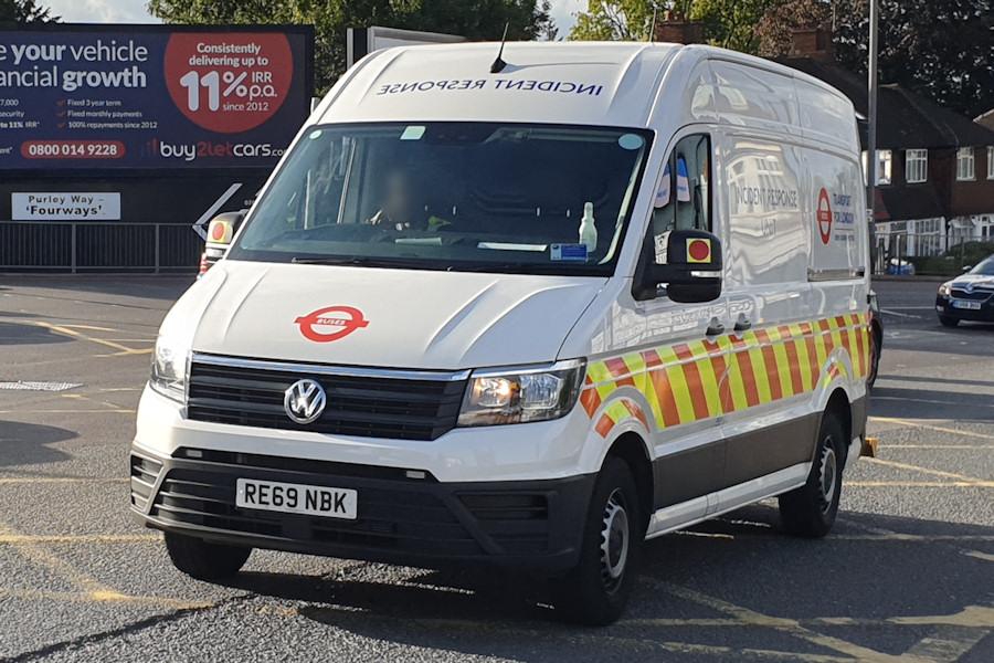 Details: 9062VW was one of the first Volkswagen Crafter IRUs to enter service, having been delivered in early February 2020 and allocated to Morden. On the 22nd August it was caught heading down Purley Way. |