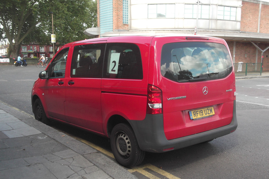Details: Go-Ahead London has at least 46 Mercedes-Benz Vito minibuses in unmarked red. They are used for crew ferry duties from seven of the group's garages. I don't intend to publish photos of every one of these largely identical vehicles, although I have already covered more than half of them. Today's addition is Northumberland Park's RF19UZM, seen at Turnpike Lane Bus Station on 1st August 2020. London Spotter's camera seems to capture the shade of red on these vehicles very slightly differently to everyone else's, as seen also on his photo of RX18LLC. It's not serious enough for me to try and mess about with post-processing though. |