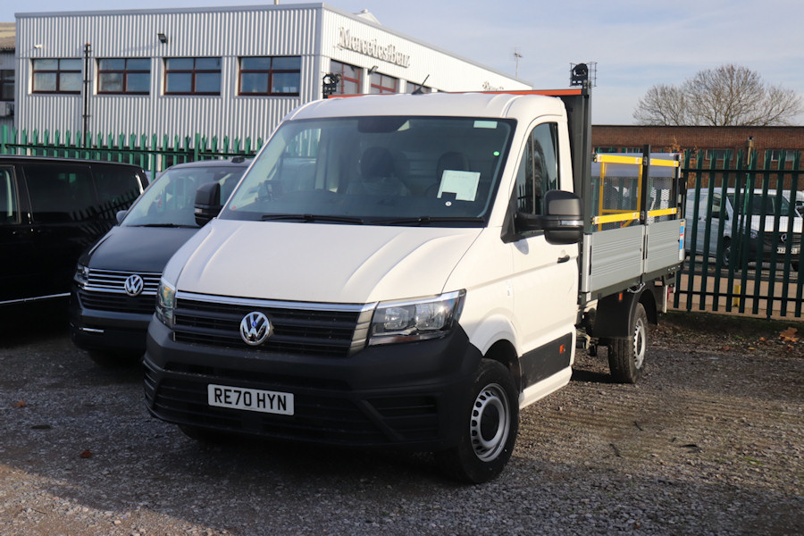 Details: A sign of things to come? There were no obvious service vehicles at the Cordwallis Volkswagen dealership in Bedfont on 24th November 2020, but there were a few plain white vehicles which may yet turn out to be for the central fleet. One of these was VW Crafter dropside truck RE70HYN, as shown here. Apart from a couple of Mercedes Sprinters, all mid-sized dropsides for the central fleet since 2008 have been Ford Transits. Having said that, LUL has taken a few Crafter vans recently, following a large batch for LBSL, and it may be that the type has proved itself suitable. Normally, dropside trucks for LUL would come with blue bodywork, but the fact that the recent Crafter vans have entered service in all white could mean that the livery policies have changed. Note that this truck has the black plastic panel below the headlights and grille, similar to that on the vans at Hainault, but different to the white panel on the LBSL vans and LUL crew vans. |