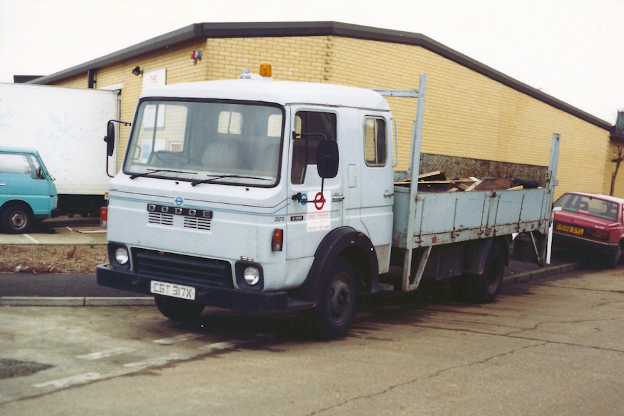 Details: Salter Street (Willesden) again, and another photo taken by Derek on 19th March 1991, this time of former Butterwick (Hammersmith) resident 2317D. Derek gave the location as BEL Willesden, though I suspect that this is actually another one with the neighbouring generator firm. Although the lorry still has a full set of lettering, it is parked on the industrial estate roads (rather than in the BEL premises) and it had not been road-licensed since December 1990. The livery is slightly interesting, the pin-stripes and blue roundels being retained with a newer, white label applied on top. This had a red roundel, London Transport and the phone number 071-227-6497 (a Westminster code?). There may also be a line of text above the phone number but I can't make it out. |