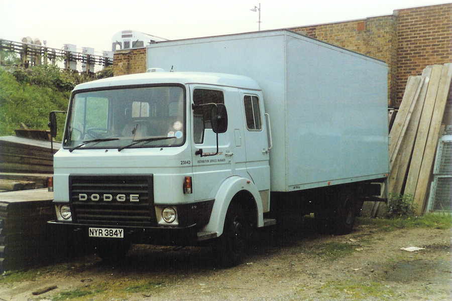Details: Today's batch of photos covers all four of the Dodge Commando lorries fitted with box bodwork. 2384D was one of the three that had a crew-cab and tail-lift, and it was another of the type to start out with grey wheelarches that were later repainted black. Other changes apparent in the later photo are the addition of a roof beacon light, and a Renault diamond on the front grille. Following a conversation with James, I now know the location of this photograph, and it is a place I was not previously aware of. About 200 yards south-west of the main Parsons Green Works, there was a small vehicle yard at the corner of Whittingstall Road and Beaconsfield Walk. This appears to have been used for overflow parking, though it has long since been built over. This discovery is useful because I had a few photos marked as Parsons Green (such as this line-up) which I could not relate to the main works. The wall in the background of both photos belongs to an adjoining small industrial premises, accessed from Lettice Street, and still there in 2020. An aerial view showing the area has since been added here. |