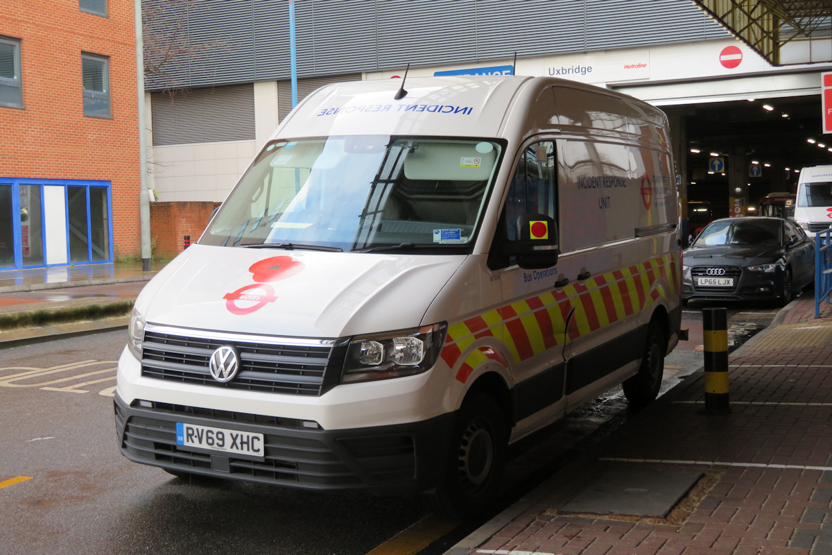 Details: Uxbridge Bus Station has an allocation of three Incident Response Unit vans but it is normal to find only one or two present, the remainder being outstationed to locations such as Harrow. On 19th December 2020 John found 9079VW on site, with 9073VW parked behind. Both were from the batch delivered in February 2020 before the COVID-19 situation delayed further deliveries. As such, they both have 69 registrations, and both still carry remembrance poppies on their bonnets. |
