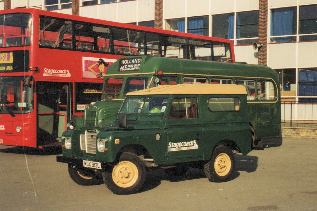 Details: Ray recently unearthed this photo of Land-Rover MGX913L at the Crown Woods car show in Eltham (an event he organised) on 17th October 1999. In the background are preserved Guy bus GS15 and brand-new Stagecoach Dennis Trident TA56, the latter being borrowed from training duties at Plumstead Garage to attend (and also to provide bus rides to the equally-new Millennium Dome). MGX913L was of course new to London Transport as 1761LR in 1972. Withdrawn in 1982 it was restored by apprentices, repainted red and windows fitted in the previously plain sides. Used as a display vehicle for a few years, it later passed to bus company East London, being repainted emerald green with gold Stagecoach logos by 1995. By 1999, the gold East London logos had been replaced by white Selkent ones, and the spare wheel from the bonnet (added during its renovation) had been removed again. This reminded me that I was contacted in 2018 by the current owner of this vehicle who asked if I wanted any photos. Unfortunately he never got back to me. Perhaps I should send a nudge... |