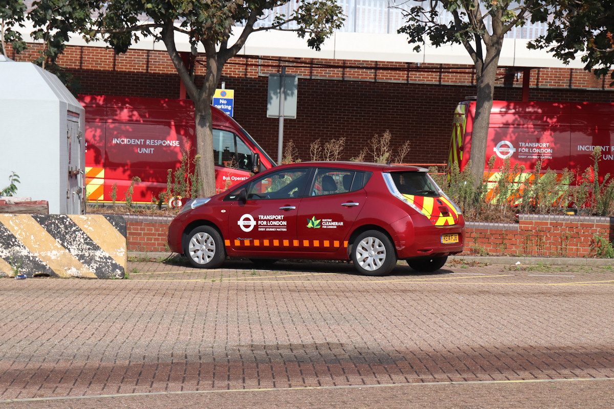 Details: Nissan Leaf car KE14FJO has had a somewhat uneventful life. New in autumn 2014, it spent a few months working from Acton before moving to Eltham in February 2015, where it has remained ever since. Being over six years old, it has lasted longer than most central fleet cars, including similar Nissan Leaf LR14FFM which (for reasons that are not clear) was given fleetnumber 7762N but which was withdrawn in 2019. Although the shade of red on these two is much darker than standard 'LT' red, KE14FJO is now the only vehicle remaining in the red with orange squares livery introduced in 1999. Indeed, with the departure of the red Mercedes Sprinter IRUs (like 7848M and 7863M seen in the background of this photo taken on 22nd September 2020), the only red service vehicles are KE14FJO and perhaps a couple of vehicles used by the LT Museum. Actually, I need to add the qualifier of 'central fleet' to that statement, since many bus companies still specify red livery for their vans and minibuses. |