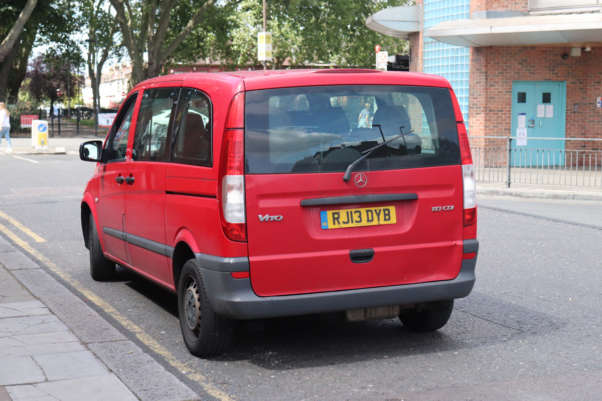Details: Unmarked red Mercedes Vito minibus RJ13DYB has now chalked up over seven year's use as a crew ferry vehicle from Go-Ahead London's Northumberland Park Garage. It can often be seen doing the short runs to Tottenham Hale Station, but it also ventures further afield, with sightings at Edmonton, Southgate and Turnpike Lane. It was photographed at the latter location on 21st July 2020. Minibuses like this allow greater social distancing than the use of cars, and some minibuses at Metroline have been reported as being fitted with a plastic screen between the front seats and the 'passenger' compartment. |