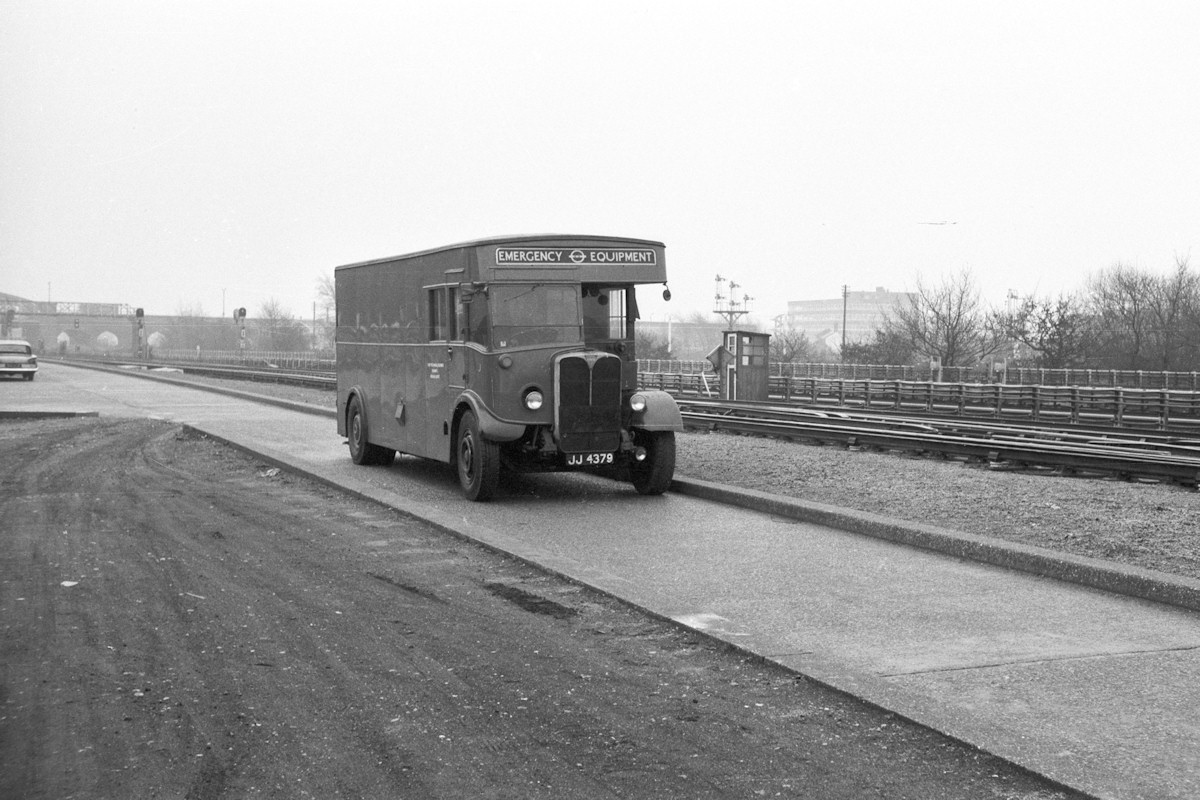 Details: AEC Regent bus STL162 was rebuilt as service vehicle 832J in 1950 and spent the next six years as an auxiliary breakdown tender at various bus garages. It was then transferred to the railway side of London Transport and was based at Neasden Depot for the next 21 years. It was photographed at the depot on 14th March 1970 and I have left this photo uncropped as it shows how open this location was back then, with no fences between the depot and the running lines. |