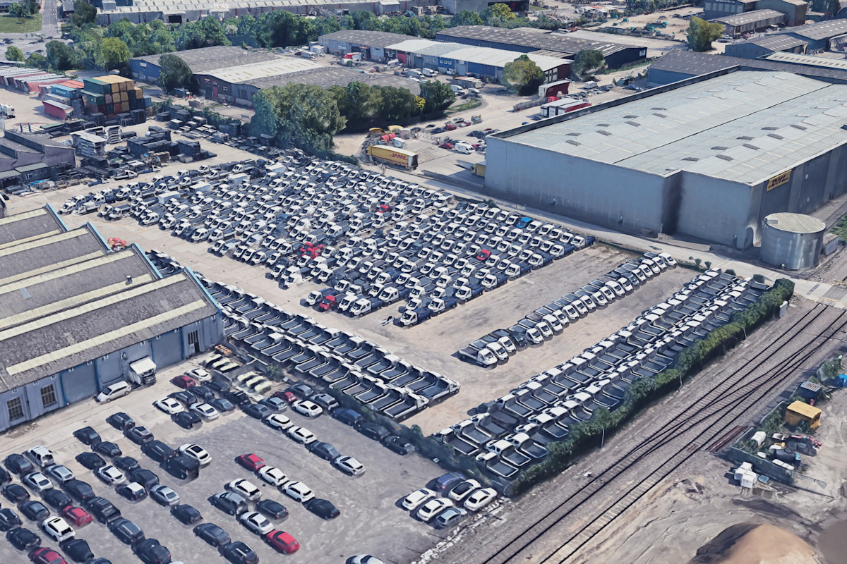 Details: One more Google picture for today. I was exploring the railway facilities at Eastleigh in Hampshire when I noticed this yard close to the station that was literally packed with Ford Transits. There were in fact almost 400 of them present, most being dropsides or bare chassis-cabs. Transits used to be built nearby (at Southampton) but since 2013 all Transits for the UK have been built in Turkey. They are most likely imported through Southampton Docks, and the vehicles seen here are presumably recent arrivals. The connection to LTSV is tenuous, although it is notable that quite a few of the vehicles (particularly in the center of the image) have white cabs with blue bodywork and could thus have ended up as LUL service vehicles. |