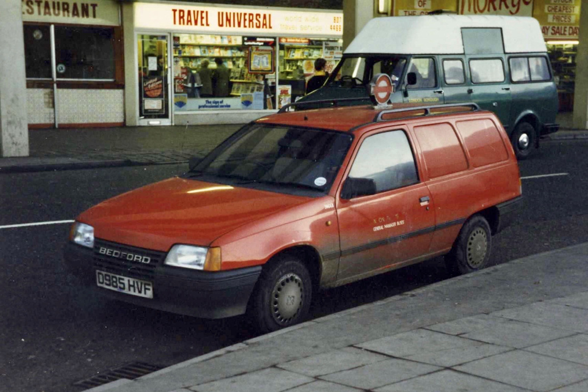 Details: Here is another of the 1980s Inspector's vans, this one being Bedford Astra van 3466B new in late 1986. It shows two features common to these vehicles, namely the roof-mounted roundel with the original inset sections not quite fitting the later shaped frames, and also the side lettering that seemed prone to rubbing off in places. 3466B was only used for 2-and-a-bit years, though we have listed it as being allocated to West Ham, Enfield and Wood Green during that time. However, I think the West Ham allocation may be incorrect. Being photographed at Edmonton Green Bus Station in February 1987, it was no doubt already based at Enfield. The minibus in the background is slightly interesting. London local authorities operated many minibuses for social welfare work, this seeming to be a London Borough of Enfield Bedford CF type. What is notable is the way in which a full-height door has been provided in the high-roof bodywork. Do you remember when you had to go to a travel agent to book a holiday? |