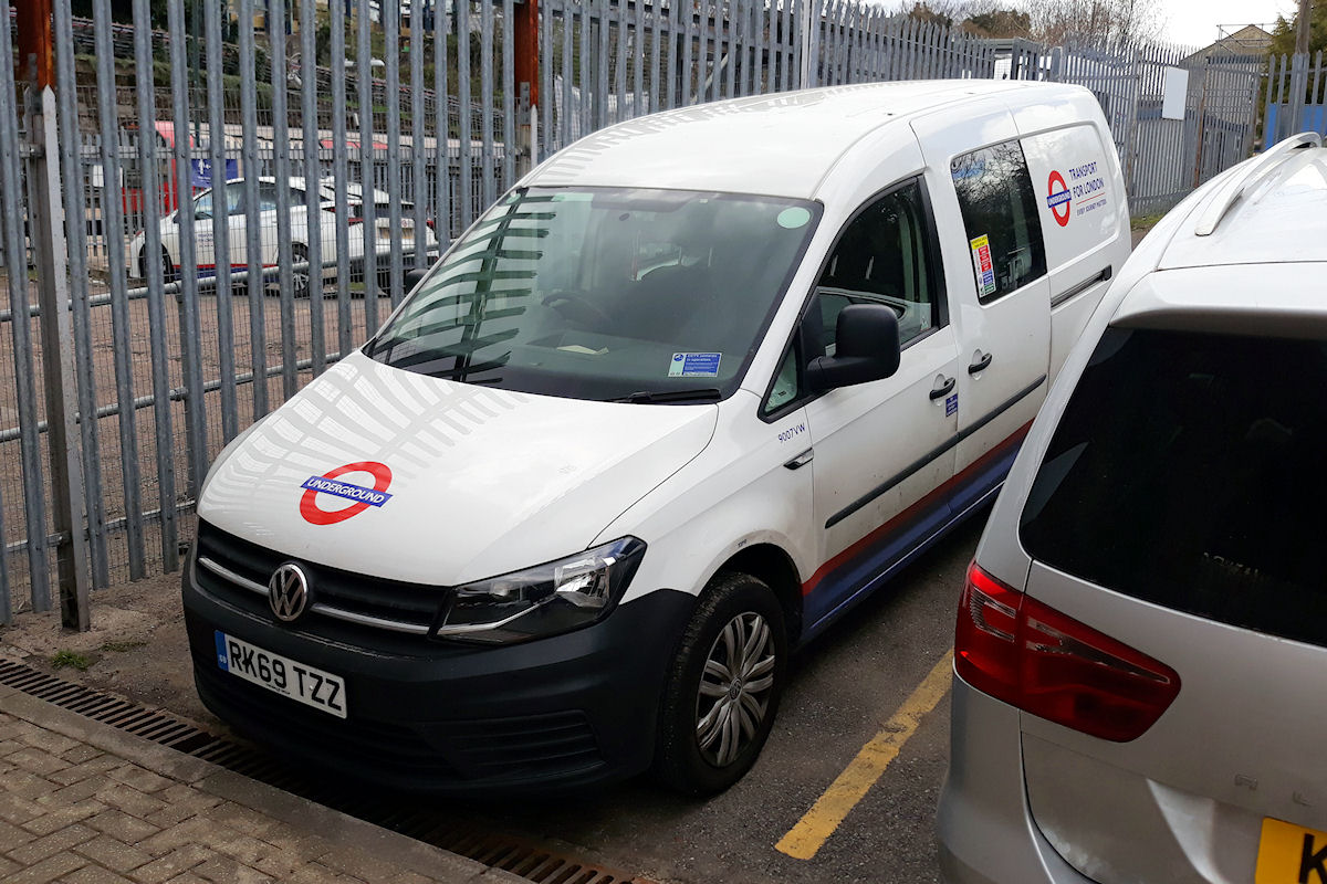 Details: 9007VW is a Volkswagen Caddy Maxi crew van allocated to Finchley Central Station, where it was photographed on 11th April 2021. Several similar vans are based here, these having fleetnumbers in the 8966VW to 8971VW range. 9007VW was a one-off number allocation (being flanked by London Overground and Hainault vehicles). The fact that number 8968VW has not (yet) been reported makes me wonder if this van was originally intended to carry that number. This would not be unheard of. The Mercedes Sprinter van just visible behind the back of 9007VW was seemingly ordered as 8138M then changed to 8177M (although it is officially 8178M!). Also visible behind the fence is Toyota Prius car 8975T. |